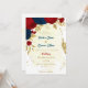 Fleurs romantiques rouge foncé et bleu marine avec faire-part de mariage botanique feuille d'or Les détails de la parties scintillant sont simulés. Il convient aussi bien aux mariages qu'aux parties d'engagement.