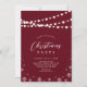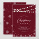 Célébrez la saison avec cette invitation de fête moderne. Ce design comprend du texte personnalisé élégant, des flocons de neige et des lampes à cordes. Vous pouvez customiser le texte, la police et les couleurs. Idéal pour un dîner de vacances à thème rouge et blanc foncé, ou une fête de vacances d'entreprise.