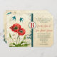 Monogramme Vintage Bleu Vintage Inséparables Rouge Pavot dentelle Damask Rustique Floral Ferme Pays Lovebird Faire-part de mariage. Parfait pour Boho Rustique Bohemian Grange Élégante Farmhouse Cottage Chic Mariage Thèmes Inséparables Vintages Mariage Invitations