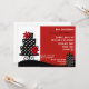 Invitation rouge et noire classique avec gâteau et cadeau.
