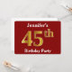 Invitation Rouge, Faux Gold 45e fête d'anniversaire + Nom per