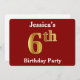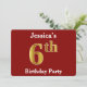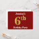 Invitation Rouge, Faux Gold 6e fête d'anniversaire + Nom pers