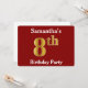Invitation Rouge, Faux Gold 8e fête d'anniversaire + Nom pers