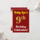 Ce design d’invitation à la fête d’anniversaire comporte un message comme "La fête du 9e anniversaire de Betty-Lou!", où le nom peut être personnalisé, et où le numéro "9e" a une apparence fausse or. Il est également décoré d'un arrière - plan de couleur rouge. Les détails de l'événement sur le dos peuvent être customisés. Il pourrait être utilisé pour invitation des gens à la fête du neuvième anniversaire ou à la fête d’anniversaire de quelqu’un. [~Z0000120]