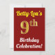 Invitation Rouge, Faux Gold 9e anniversaire Célébration + Nom