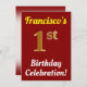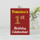 Invitation Rouge, Faux Or 1er anniversaire Célébration + Nom