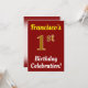 Ce design d’invitation de fête d’anniversaire comporte un message tel que "Francisco’s 1st Birthday Celebration!", où le nom peut être customisé, et où le numéro "1st" a une apparence fausse or. Il est également décoré d'un arrière - plan de couleur rouge. Les détails de l'événement sur le dos peuvent être personnalisés. Il pourrait être utilisé pour invitation des gens à la fête du premier anniversaire de quelqu’un ou à la fête d’anniversaire de quelqu’un. [~Z0000120]