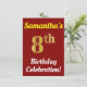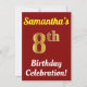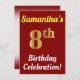 Invitation Rouge, Faux Or 8e anniversaire Célébration + Nom
