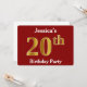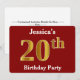 Cette conception d'invitation présente le nombre ordinal "20e" avec une apparence faussement dorée. Elle comporte également un nom personnalisable et un fond rouge. Les détails de l'événement au dos peuvent être personnalisés. Elle pourrait être utilisée pour inviter des gens à la fête des vingt ans de quelqu'un.