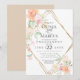 INVITATION DE FIANÇAILLES | Des fleurs à l'aquarelle dans des tons pastel de corail, rose pêche, jaune, crème et des feuilles vertes délicates cascades autour d'un cadre géométrique doré à facettes de style diamant. Le verso est d'une couleur complémentaire coordonnée. Personnalisez le texte, la police, la couleur et la taille. Nous avons créé ce modèle pour vous permettre de le personnaliser facilement avec vos propres informations. Cela fait partie d'une suite complète de papeterie de mariage avec papeterie assortie pour mariage, baby shower et autres événements conçus par WhimsicalArtwork™.