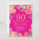Red Floral 90th Birthday Invitation for Women. Aquarelle Fleurie Botanique. Parties scintillant or. Arrière - plan rose chaud. Pies Roses Fleurs Florales. Anniversaire adulte. Pour plus de personnalisation, cliquez sur le bouton "Customiser" et utilisez notre outil de conception pour modifier ce modèle.