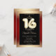 Tiare d'or et confetti d'or en arrière - plan rouge Sweet 16 anniversaire invitation fête.
