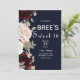 Invitation Rouge Navy Rose Pâle et Fleurs de Bourgogne Douce