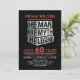 La typographie "L'homme le mythe la légende" en noir, rouge bordeaux et blanc, personnalisait votre nom et les détails de votre fête. Grandes invitations d'anniversaire pour adultes pour 30e, 40e, 50e, 60e, 70e, 80e, 90e ou toute autre fête d'anniversaire d'âge, et autres jours spéciaux.
