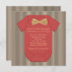 Adorable beige brun et noir pinstripe, arc cravate bébé garçon invitation douche. Un mignon chemise rouge avec cravate arc sur un bronzage et noir à rayures arrière - plan petit homme bébé garçon invitation est facile à customiser pour votre événement. Ajoutez vos détails à l'avant et/ou à l'arrière en cliquant simplement sur le bouton "Customisez-le !" pour commencer à ajouter les détails de votre événement, le style de police, la taille et la couleur de la police et le libellé. Veuillez noter que tous les modèles d'invitation que vous trouverez sur Zazzle sont des graphiques imprimés sans bijoux, arcs, surélevés, gaufrés, ou des pièces ou pièces ajoutées.