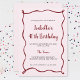 Cette invitation d'anniversaire mignonne, moderne, rose et rouge est parfaite, quel que soit l'âge jalon. Avec un arrière - plan arrière - plan rose clair, l'invitation comporte une bordure rouge dessinée à la main et la typographie rouge et noire peut être facilement customisée avec les détails de votre fête.