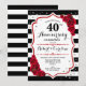 Invitation Rouge Rubis 40e Anniversaire - Rayures Noires Blan