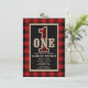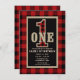 Buffle Rouge Rustique Noir Plaid 1st Birthday Party Invitations.