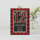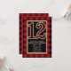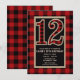 Cartes d'invitation Rouge Rustique Plaid Buffalo Noir 12e 12 Anniversaire.