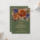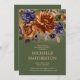 Elégante et élégante invitation à la fête du 60e anniversaire pour les femmes avec rouille/brûlé orange et bleu marine fleurs et verdure sur un arrière - plan vert chasseur. Contactez-moi pour obtenir de l'aide sur la personnalisation ou pour demander l'appariement ou la coordination des produits Zazzle.