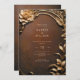 Découvrez la beauté de votre amour avec cette Faire-part de mariage enchantée de rouille et d'or. Avec son arrière - plan marron texturé et orné d'un décor métallique doré en 3D, cette invitation rayonne de raffinement et de charme. Personnaliser pour saisir l'essence de votre journée spéciale.