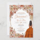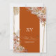 Quinceanera invitation avec fleurs séchées, roses, pampas herbe et palmiers, et feuilles d'automne. Ce design présente une fille dans une robe de coing, entourée de belles fleurs d'automne et de papillons monarques (qui peuvent être cachés dans l'outil de design si vous ne voulez pas d'eux). Voir le magasin pour ce design en plusieurs variantes, y compris les teintes de peau/cheveux, et sans la fille aussi.