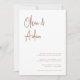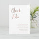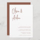 Une belle faire-part de mariage typographique avec vos noms dans la terre cuite moderne écriture manuscrite en lettres au sommet. Personnalisez avec vos détails de mariage dans les lettres serif classiques alignées en bas à droite.