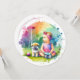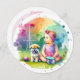 Disque golf à thème fille's baby shower invitation avec un joli terrain de golf sur le thème de l'aquarelle, une petite fille et un chien en rose, orange, bleu et vert.