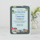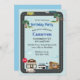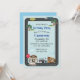 Cette invitation personnalisée à la fête présente une jolie scène de ville ou de ville avec un thème de transport. Une route est imprimée autour de la frontière avec des véhicules, des bâtiments, des arbres et des panneaux de signalisation. L'arrière - plan est d'une couleur bleu bébé douce pour ressembler au ciel bleu.