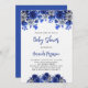 Invitation Royal bleu blanc fleurs garçon baby shower de luxe