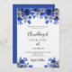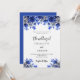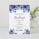 Un arrière - plan blanc, décoré de fleurs bleues et blanches. Personnalisez et ajoutez vos noms et détails. Retour : arrière - plan bleu.