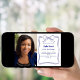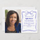 Un arrière - plan blanc, décoré d'un arc et d'un cadre bleu royal dessinés à la main. Personnalisez et ajoutez une photo, un nom et des détails de la fête.