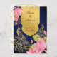 Lotus rose paon d'or bleu royal invitations de mariage indiennes avec texte d'invitation à l'arrière.