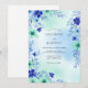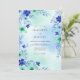 This design features a soft watercolor wash of mint green and sky blue, creating an airy backdrop for vibrant royal blue florals. Delicate anemones and graceful leaf sprigs bloom along the edges, evoking a romantic spring meadow aesthetic. The painterly style and cool-toned palette offer a serene and elegant feel for a seasonal ceremony.