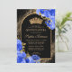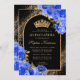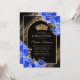 Invitation Royal Blue Black Gold Floral Photo Quinceanera