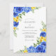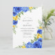 Lush bouquets of vibrant royal blue roses and delicate yellow blossoms create an enchanting display. Hints of verdant foliage add depth to this romantic, painterly floral arrangement. The luxurious color palette evokes a feeling of sophisticated charm.