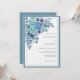 This design features a lush arrangement of hydrangea blooms in varying shades of blue, accented by delicate eucalyptus leaves and subtle pink floral details. It evokes a feeling of elegant, natural beauty perfect for a romantic occasion. The dominant blue palette offers a serene yet sophisticated aesthetic.