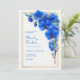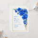 Invite your guests to a celebration of opulent beauty with this striking botanical masterpiece. The design features a lush, asymmetrical cluster of vibrant royal blue orchids cascading from the upper right corner, their petals rendered with fine, realistic veining and delicate golden highlights. Intricate gold foil branches and tiny azure buds are woven throughout the arrangement, all framed by a sophisticated double gold line border. Set against a clean, subtly textured white background, this composition offers a high-contrast, luxurious aesthetic that feels both modern and timeless. This design is a versatile choice for any season where elegance is the top priority. It is a premier choice for a sophisticated nautical-inspired beachfront ceremony, a vibrant spring garden reception, or a high-end summer gala. The crisp white background and bold sapphire tones make it an ideal match for modern city weddings, black-tie estate events, or luxury destination celebrations in the Mediterranean or tropics. Whether you are hosting an outdoor sunset ceremony or a formal ballroom dinner, these stunning orchids set a tone of prestige, artistic refinement, and high-end romance.