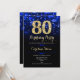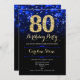 80e anniversaire invitation de fête. Elégant design bleu royal avec faux or parties scintillant. Dispose de diamants élégants, lumières de livres et police de script. Hommes ou femmes anniversaire invitation. Idéal pour une fête d'anniversaire pour adultes. Personnalisez avec vos propres détails. Message-moi si vous avez besoin d'une personnalisation plus poussée. Invitations Zazzle imprimées ou téléchargement instantané modèle imprimable numérique.