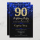 90e anniversaire invitation à la fête. Elégant design bleu royal avec faux or parties scintillant. Dispose de diamants élégants, lumières de livres et police de script. Hommes ou femmes anniversaire invitation. Idéal pour une fête d'anniversaire pour adultes. Personnalisez avec vos propres détails. Message-moi si vous avez besoin d'une personnalisation plus poussée. Invitations Zazzle imprimées ou téléchargement instantané modèle imprimable numérique.
