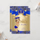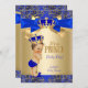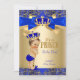 Invitation Royal Blue Gold Damask Prince Baby shower Brunette