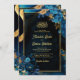 Invitation Royal Blue Gold Floral QR Code Mariage musulman