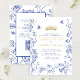 Invitation Royal Blue Gold QR Floral Butterfly Quinceañera