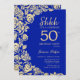 Invitation Royal Blue Gold Roses Surprise 50e anniversaire