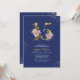 Invitation Royal Blue & Pink Magnolia Floral Quinceanera