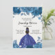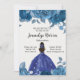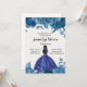 C'est une invitation pour un événement de quinceañera, avec la couleur bleue royale comme teinte principale. Une figurine d'une poupée traditionnelle de quinceañera a été incorporée dans le design pour améliorer l'apparence et l'ambiance générale de cette célébration spéciale.