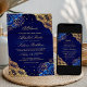 Invitation Royal Blue Rose Gold Lace QR Code Musulman Mariage