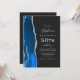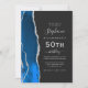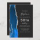 Le bord gauche de cette élégante invitation moderne à la fête du 50e anniversaire comporte une bordure d'agate bleu royal d'aquarelle ornée d'une fausse parties scintillant argentée. Le texte personnalisable combine écriture gris argenté, copperplate et polices italiques sur un arrière - plan noir ardoise. Ajoutez les instructions RSVP au verso de la carte, ainsi qu'un code QR que vous pouvez analyser pour répondre en ligne.