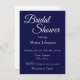 Style simple, invitation à la douche nuptiale qui comprend un arrière - plan de couleur bleue royale branché avec le nom de la future mariée et l'heure et l'emplacement de l'événement de fête, contact, etc, imprimé en blanc, stylisé. Personnalisez votre invitation en remplaçant le texte par vos propres informations sur la douche nuptiale. Sélectionnez le style et la quantité de papier d'invitation.