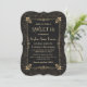 Design glamour avec une fausse forme vintage or avec le symbole royal Fleur-de-Lis, sur un arrière - plan noir texturé avec un motif Art Déco. Utilisez l'outil Personnaliser pour ajouter vos informations. Pour les objets correspondants, visitez ma Collection Royal Art Déco.